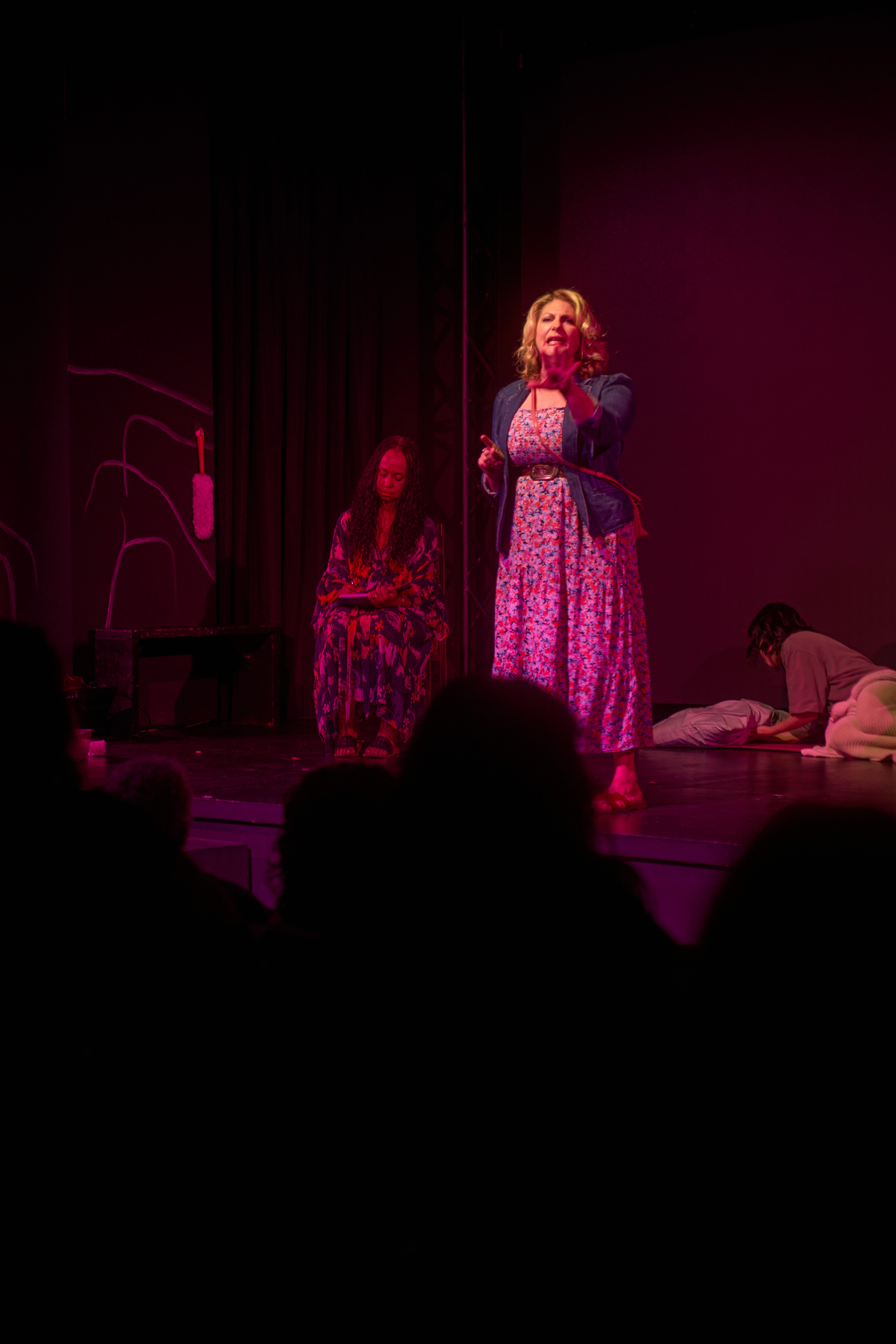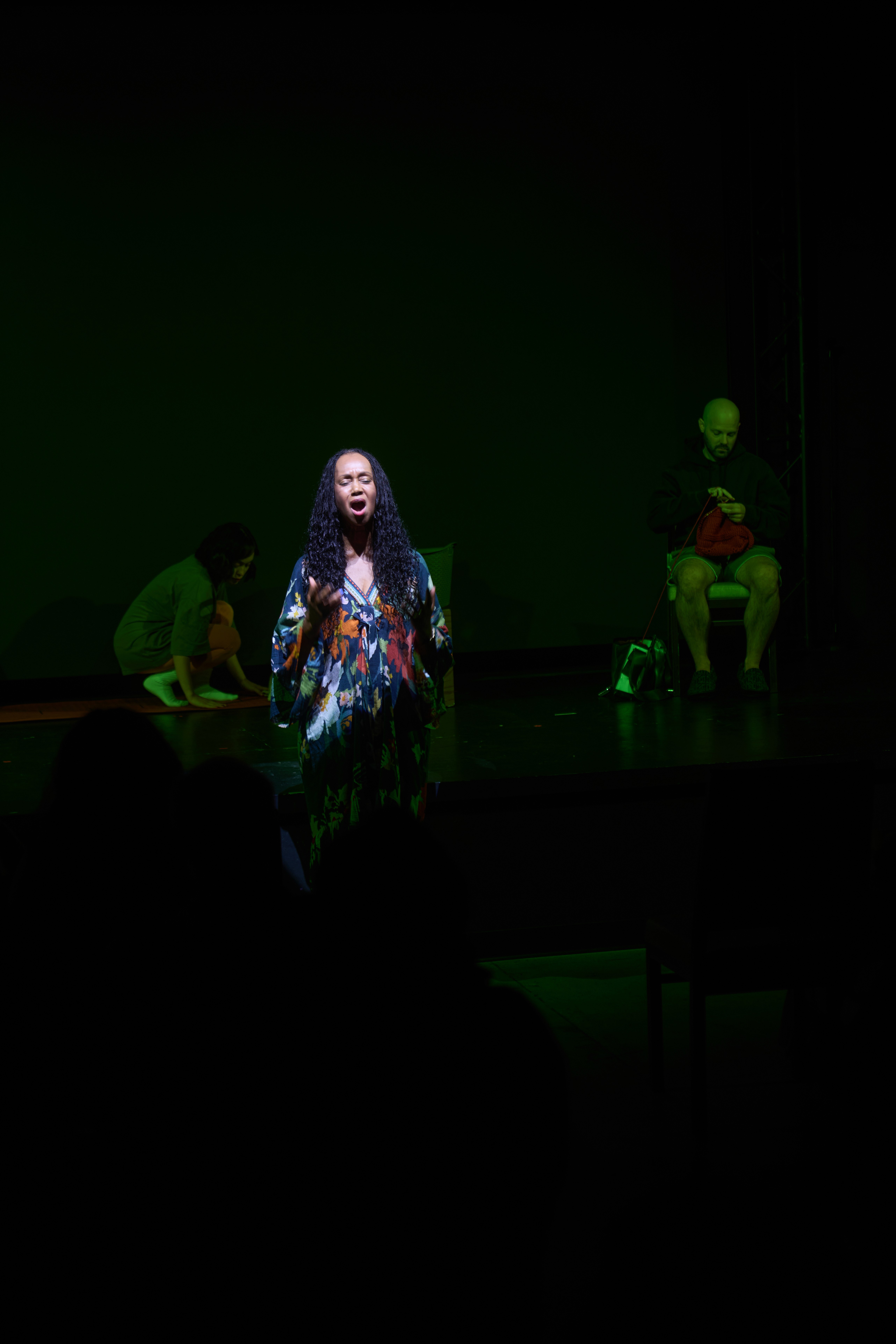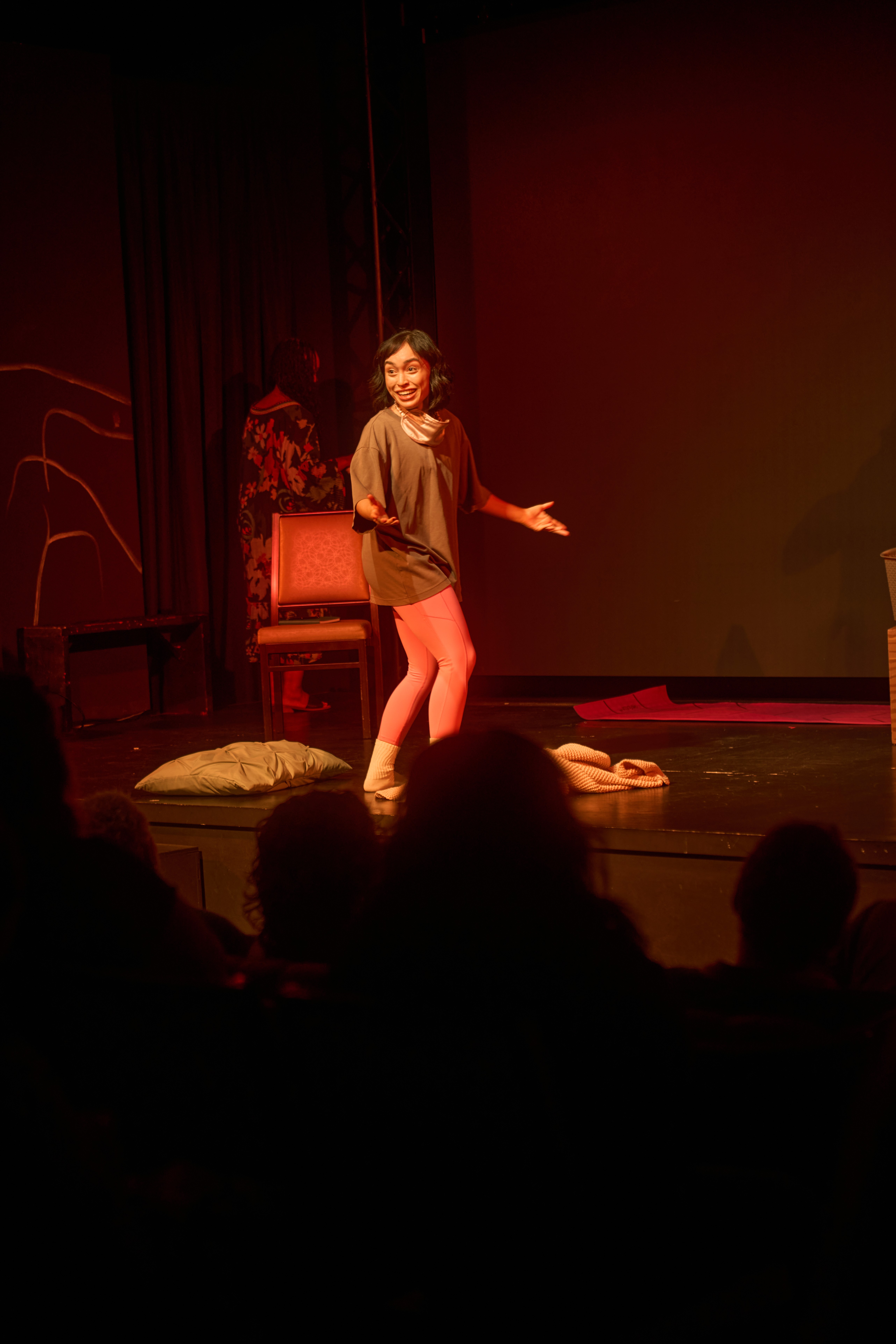 Giselle performing monologues from "The Healing Play" in a developmental process during an artist residency with The Sunflower Project